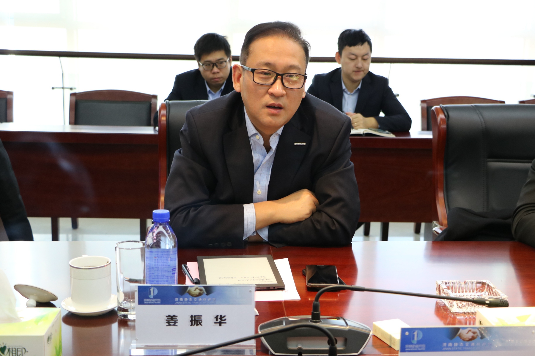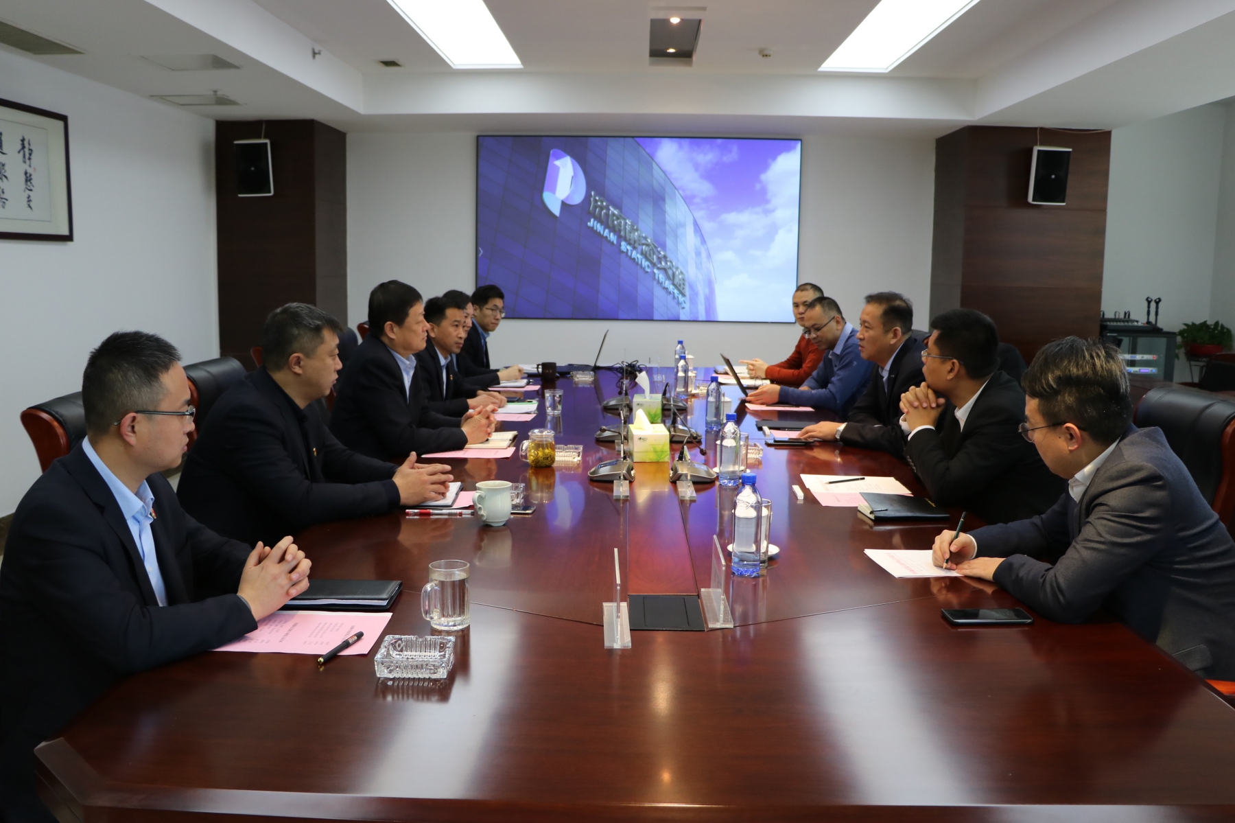 ? ? ? ? 會(huì)上,公司黨委書(shū)記、董事長(zhǎng)、總經(jīng)理李培鋼與智慧泉城公司董事長(zhǎng)姜振華分別介紹了公司的基本情況,觀看了企業(yè)宣傳片。雙方領(lǐng)導(dǎo)立足智慧交通的建設(shè)和發(fā)展,圍繞合資公司成立相關(guān)細(xì)節(jié)內(nèi)容進(jìn)行了座談,并就智慧停車云平臺(tái)立項(xiàng)推進(jìn)、搭建實(shí)施方案進(jìn)行研討交流。本著開(kāi)放合作、互利共贏的原則,雙方就下一步合作達(dá)成了共識(shí)。